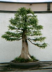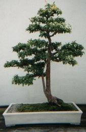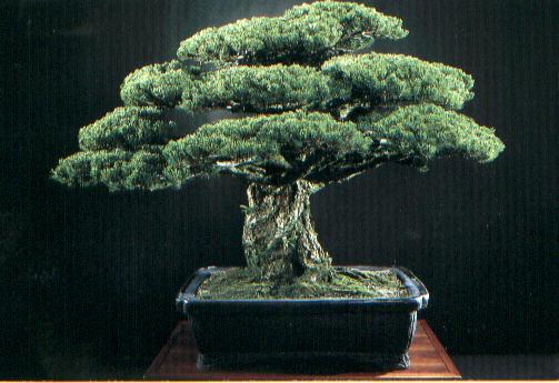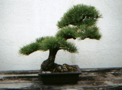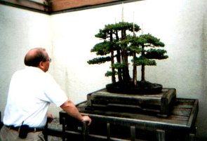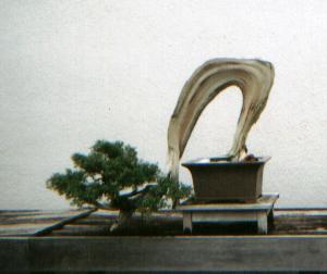 Goya-Matsu is a 380 year old (1626) Japanese White Pine at the National Bonsai Museum. This tree was a gift from Japan to the United States in 1976 in celebration of our country's bi-centennial. Japan has donated 70+ bonsais to the museum over the years. We made this photo from a museum postcard. Goya-Matsu stands about 4' tall. A very large formal upright.